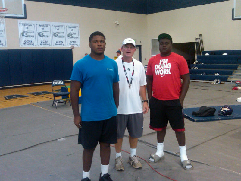 Devonta (blue shirt) and Tavarus (red shirt) with Coach Chris Yeager. |